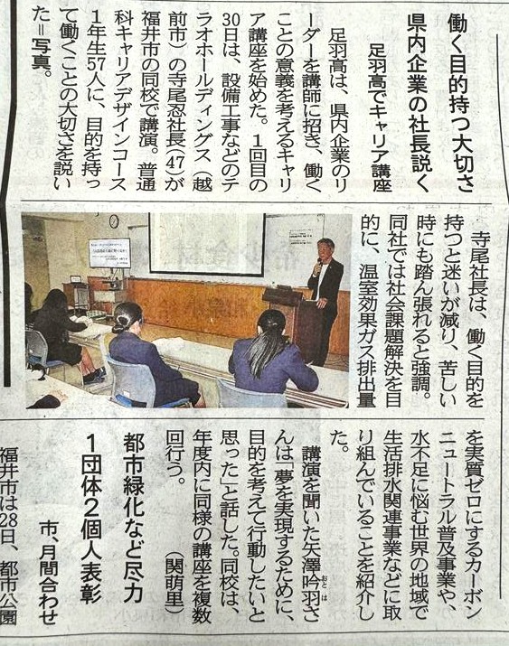福井県立足羽高等学校で「働く目的を持つ大切さ」の講義をさせて頂きました2025.10.31/NEWS